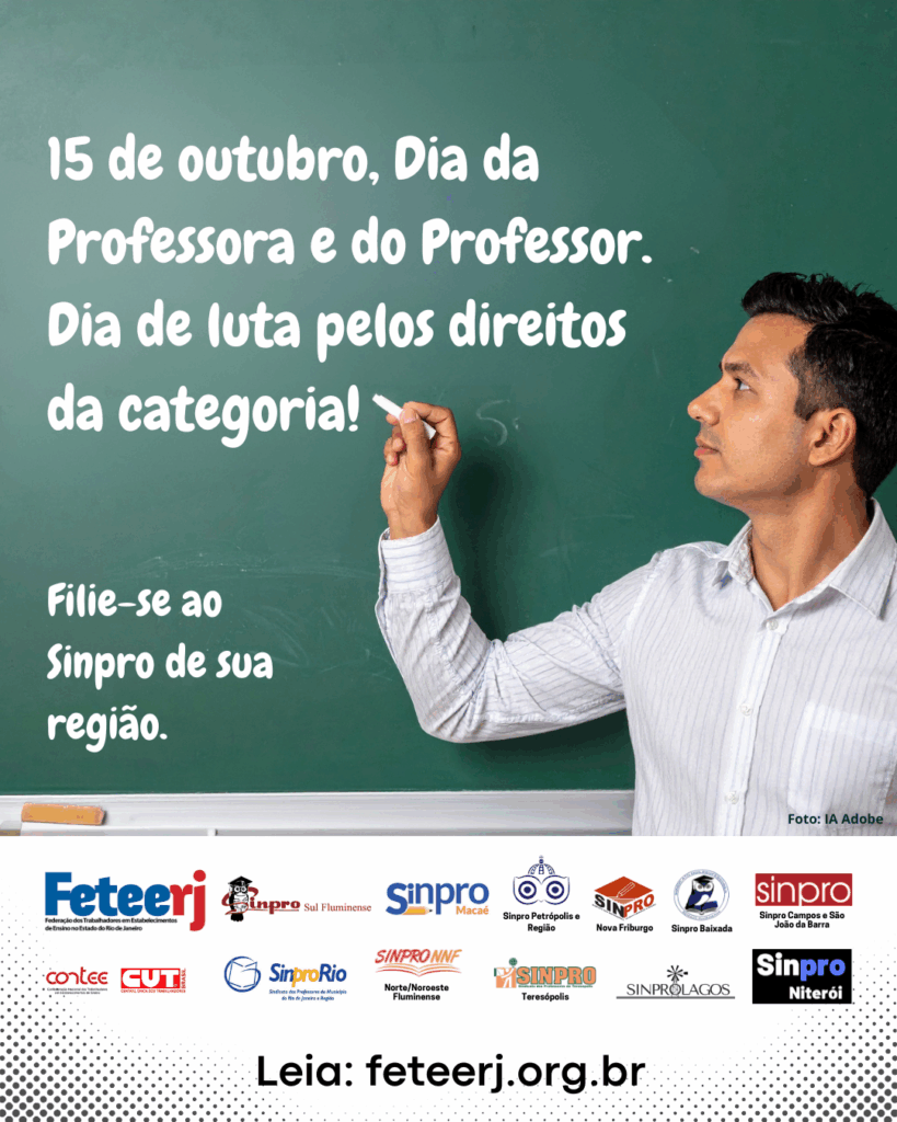 A homenagem às professoras e professores no dia 15 de outubro nasceu de forma oficial, por meio de decreto do Ministério da Educação, em 1963, mas há muito tempo se tornou um dia para marcar a luta em defesa dos direitos da categoria – e é dessa forma que a FETEERJ e os Sindicatos dos Professores (Sinpros) encaram a data.